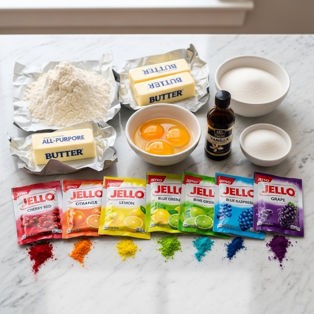 To make these delightful Jello Sugar Cookies – Soft, Chewy & Colorful Fun!, gather: