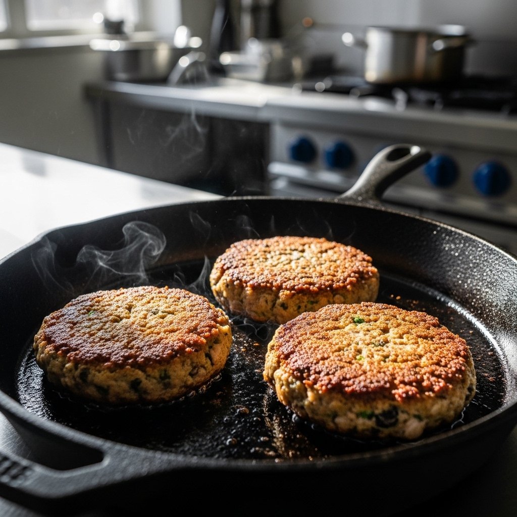 Heat oil in a skillet and cook patties for 4–5 minutes per side until crispy.