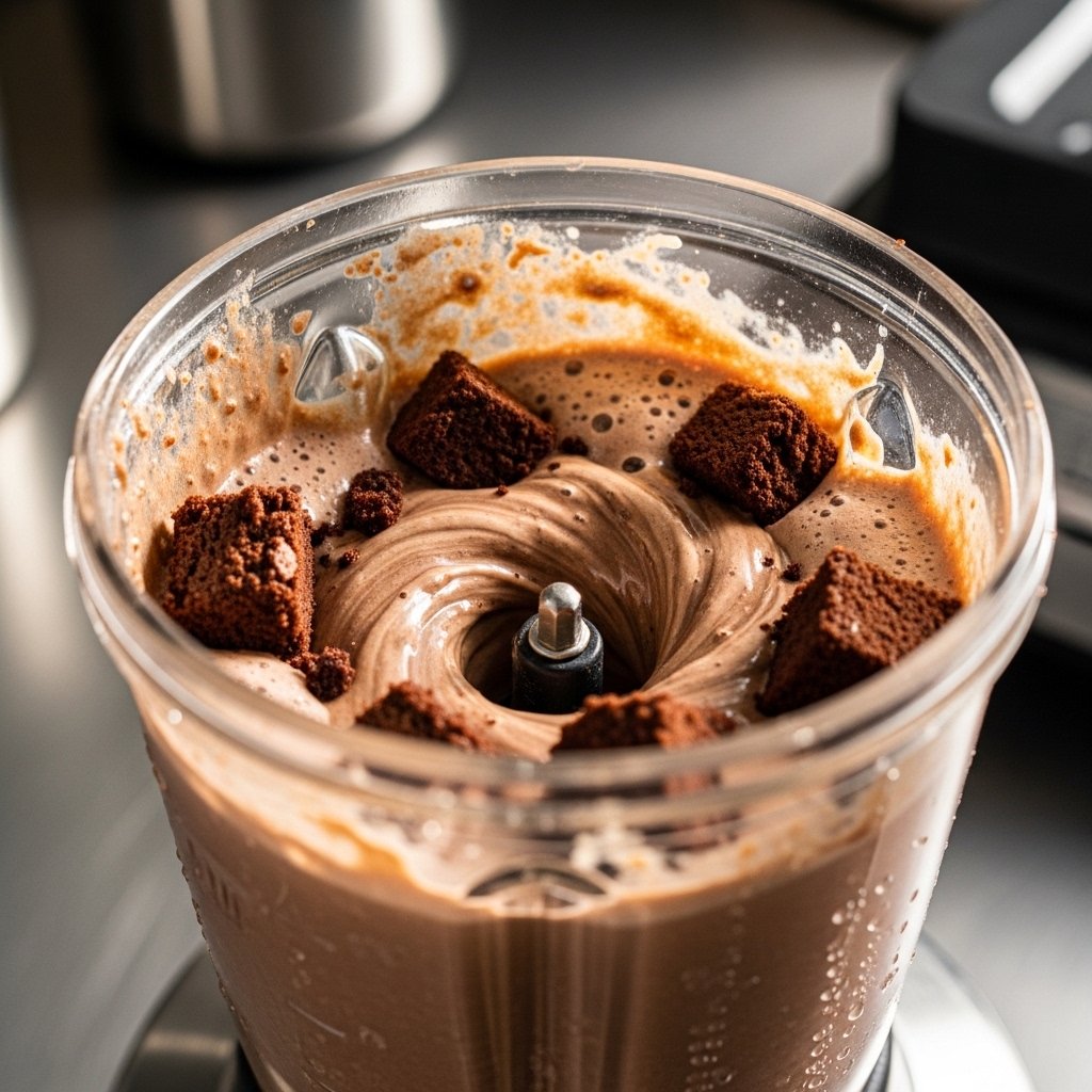 This simple process creates a thick and delicious brownie milkshake in minutes.