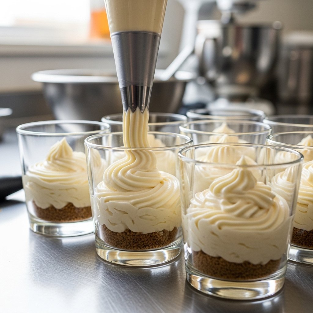 These steps create beautifully layered no-bake cheesecake cups with perfect texture.