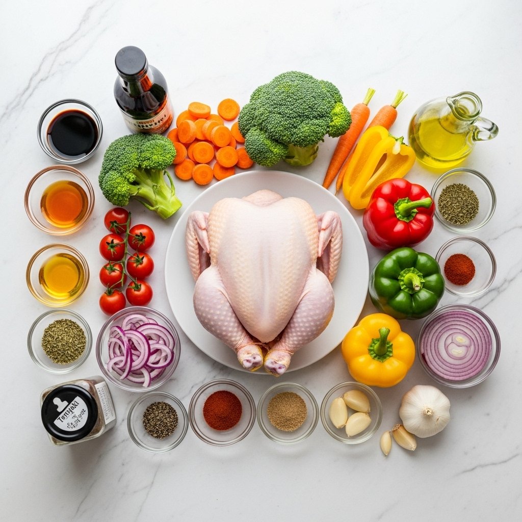 - Proteins (chicken, beef, beans, tofu)