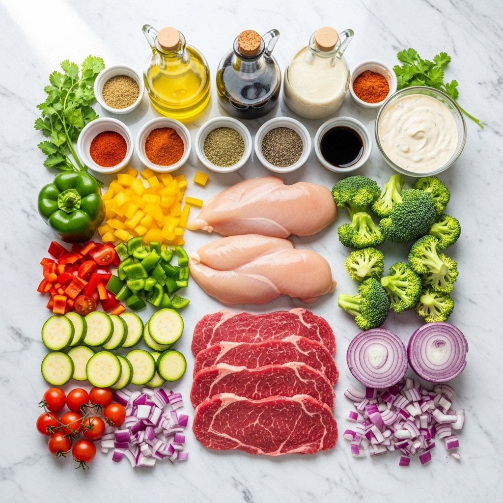 - Vegetables (bell peppers, onions, zucchini)