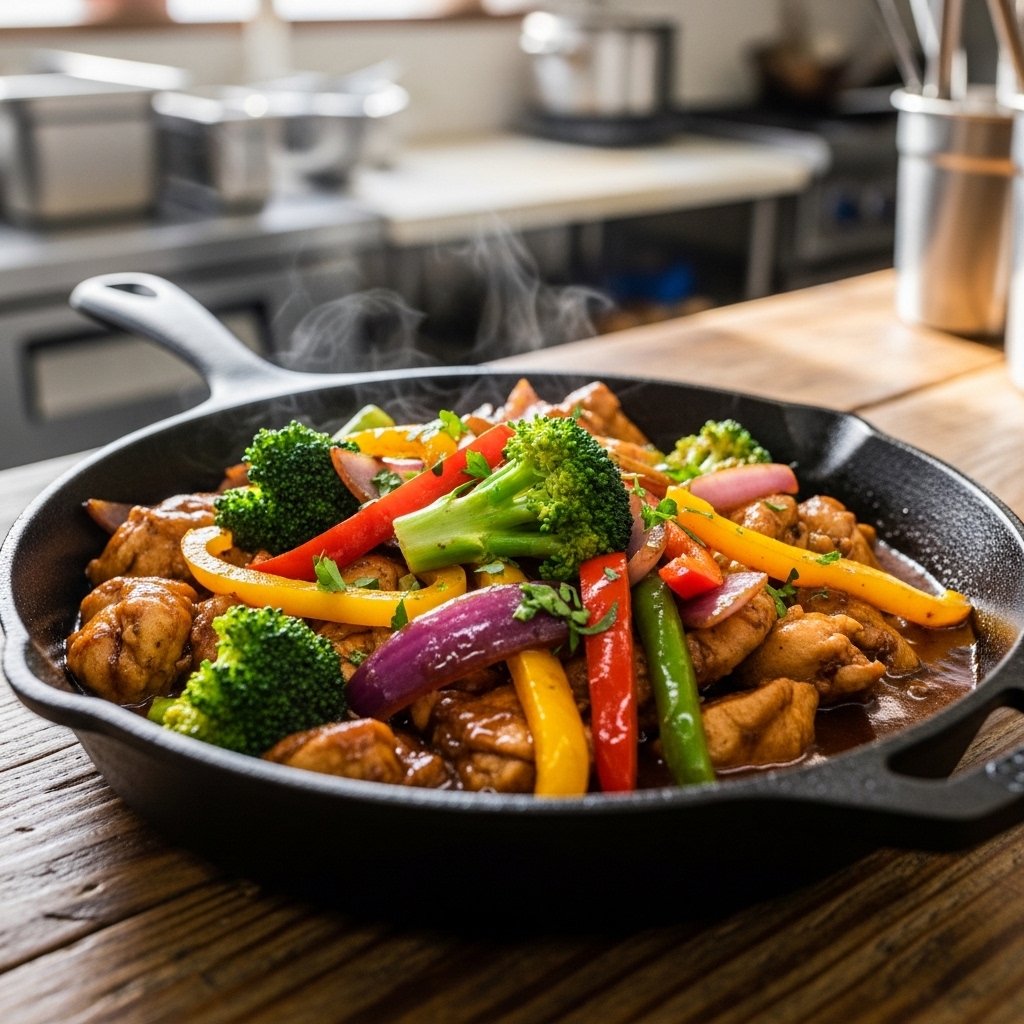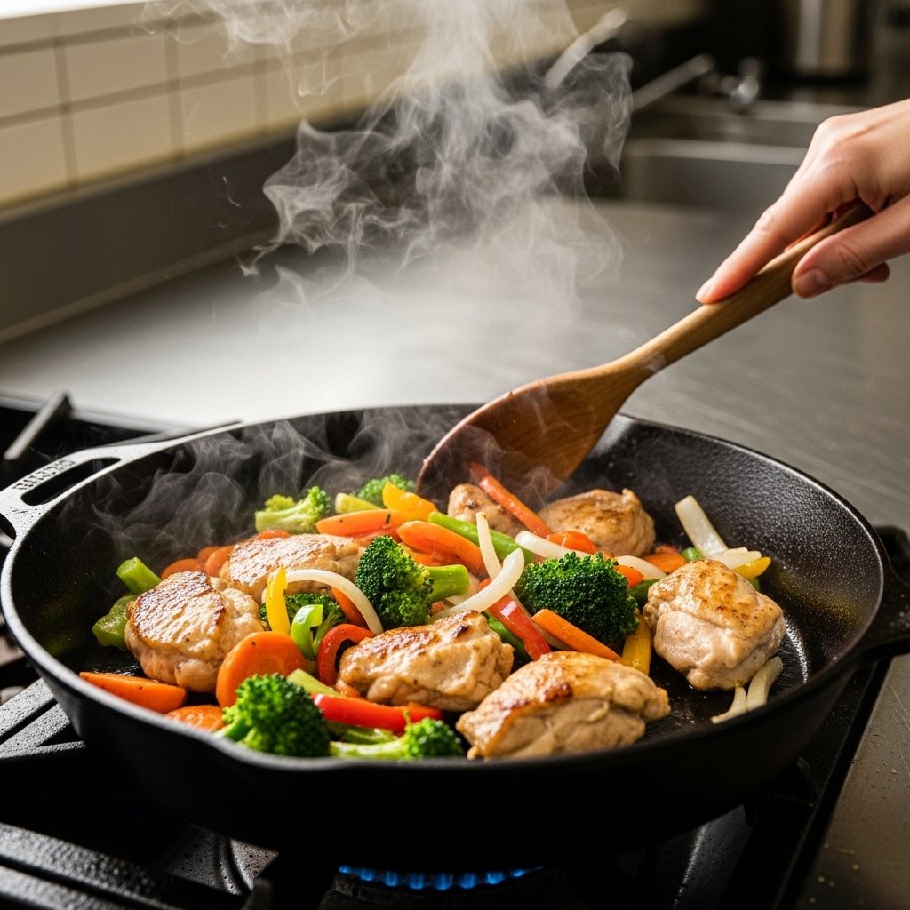 The key to great skillet dinners is choosing ingredients that cook quickly and evenly. Thin cuts of meat and chopped vegetables work best, ensuring everything is ready at the same time.