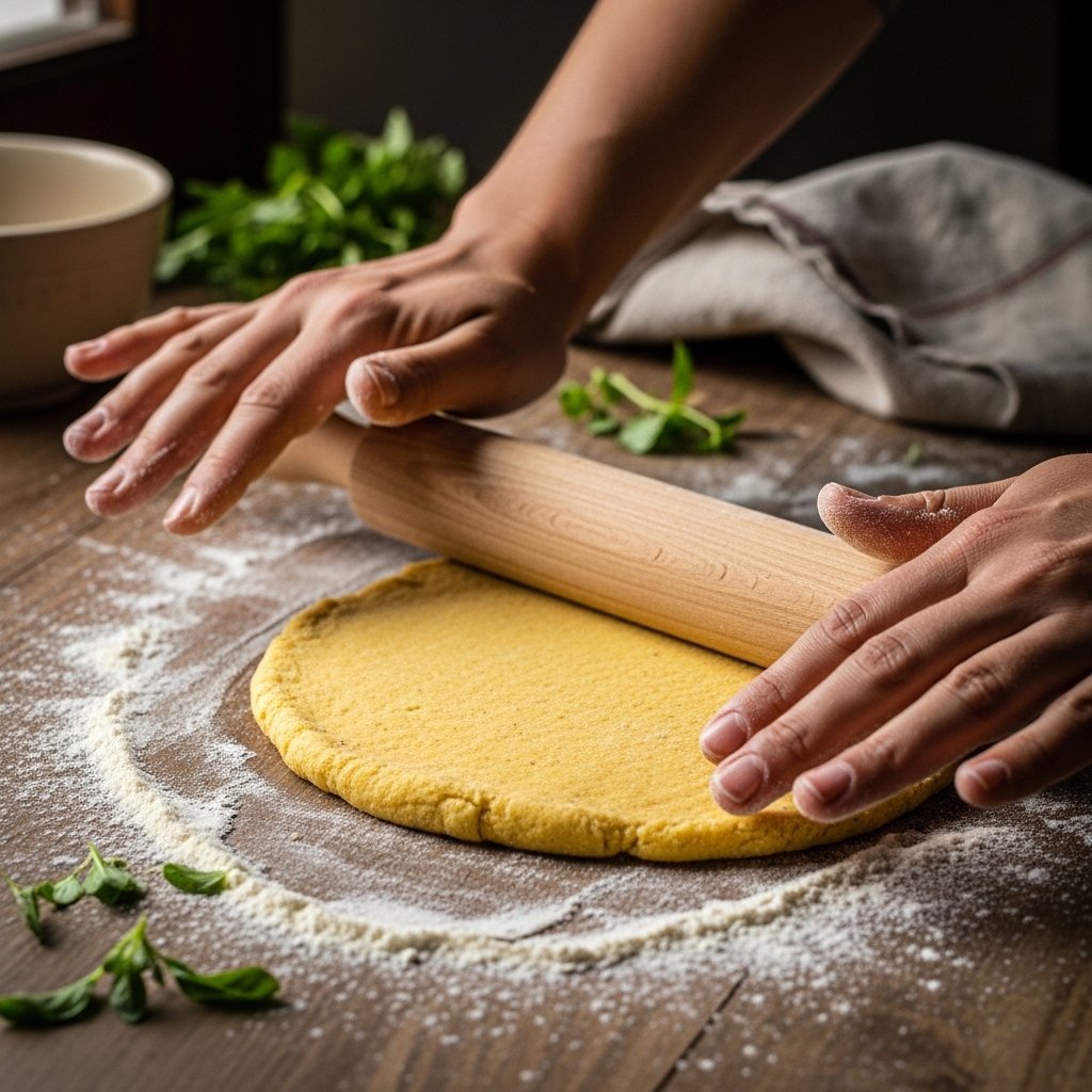 Knead the dough for 8–10 minutes until smooth and elastic. This step develops gluten, giving your homemade pasta its signature chew.