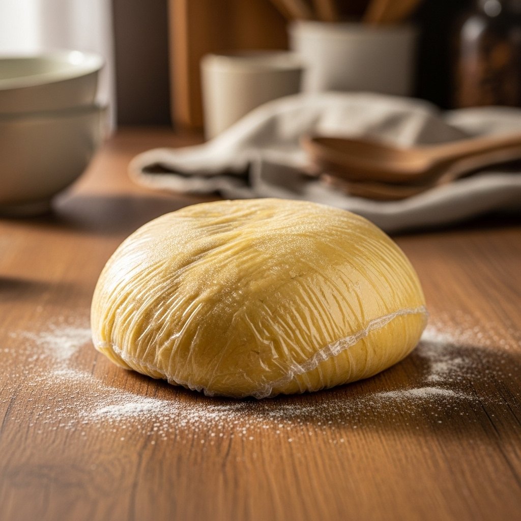 Wrap the dough in plastic wrap and let it rest for at least 30 minutes. This relaxes the gluten and makes rolling easier.