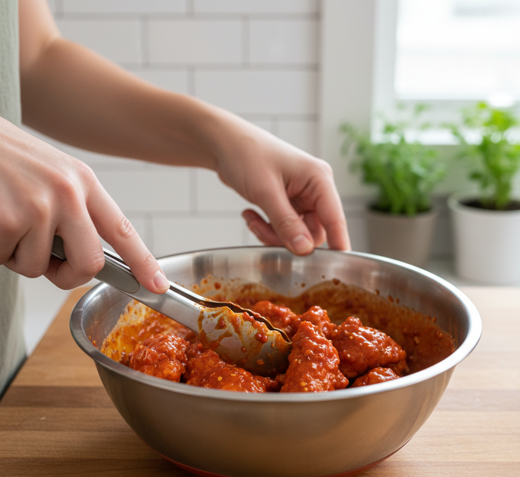 - Mix gently to avoid dense texture