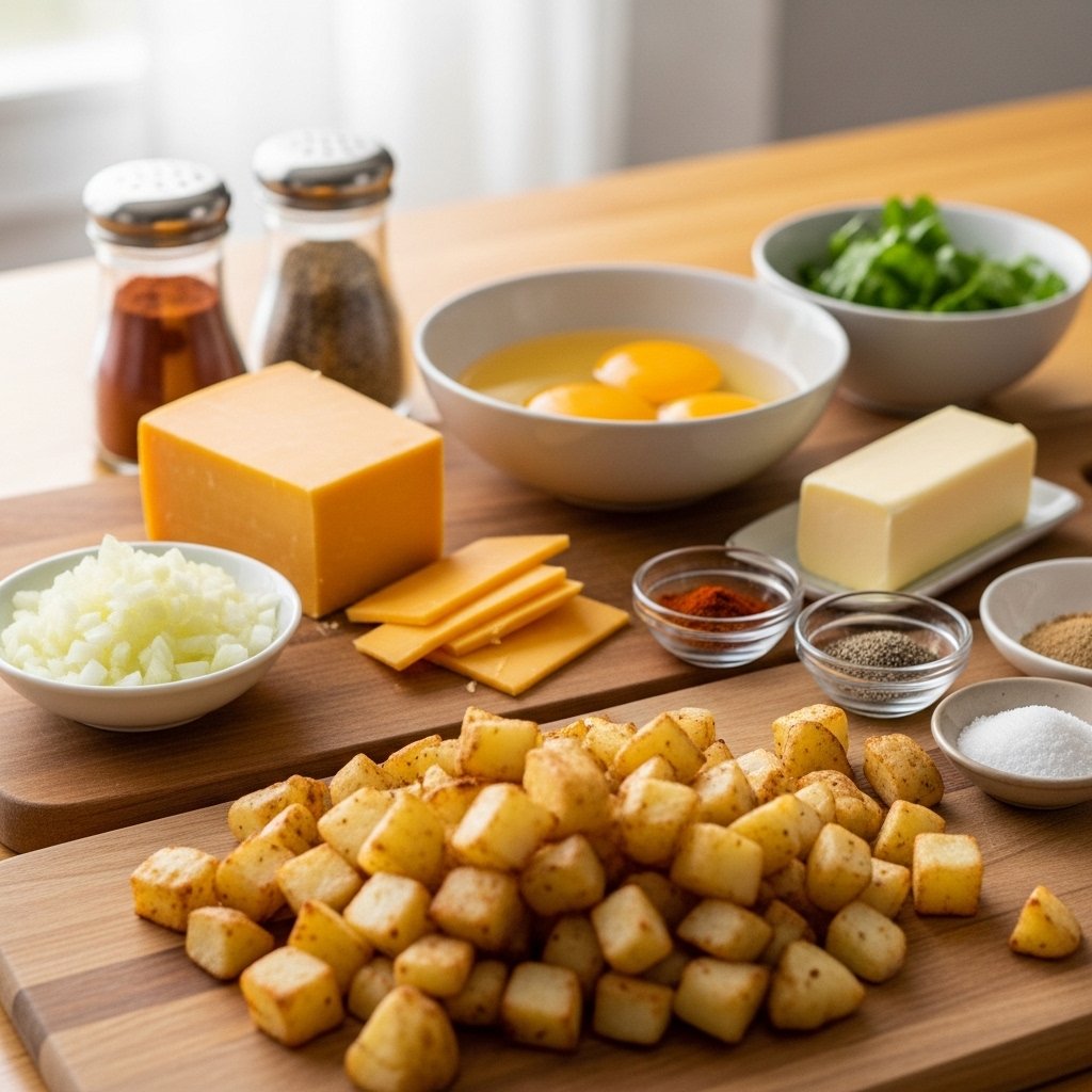 The magic of this Cheesy Potato & Egg Delight: A Breakfast Scramble to Savor! comes from simple ingredients working together.