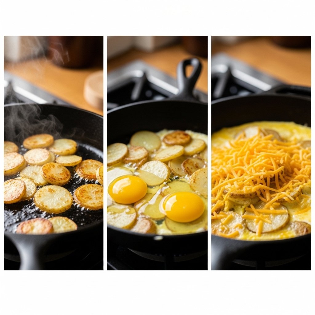 Potatoes add a crispy, hearty base, while eggs bring softness and protein. Cheese ties everything together with creamy, melty richness. You can use any cheese, but cheddar, mozzarella, or Monterey Jack work especially well.