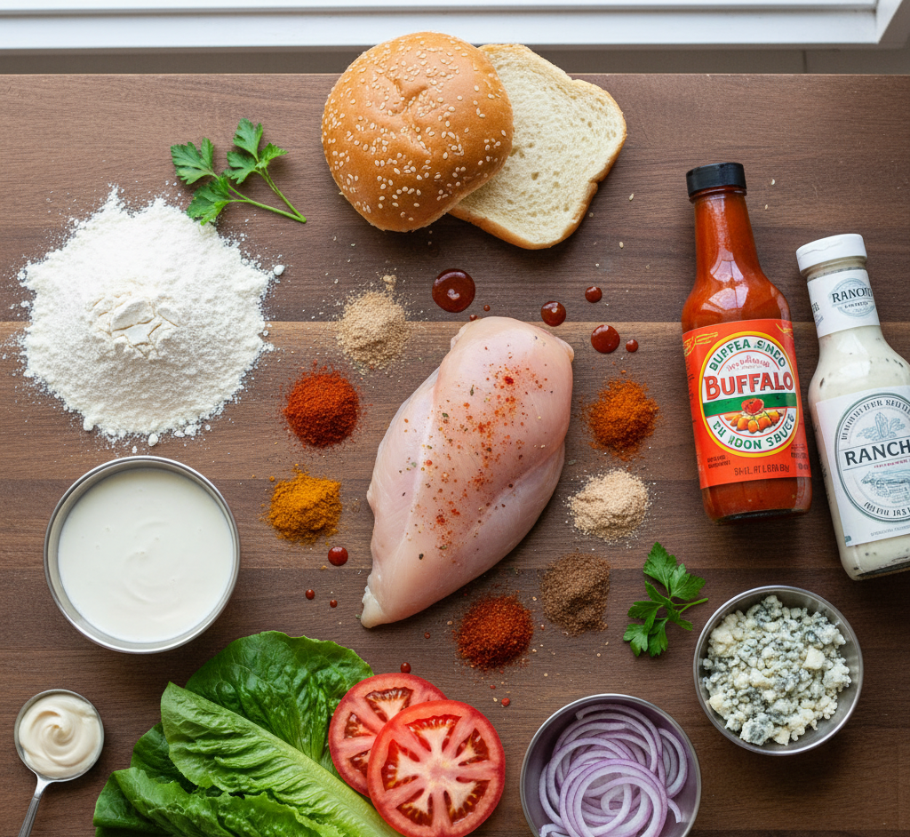 To make this delicious Buffalo Chicken Sandwich, you’ll need: