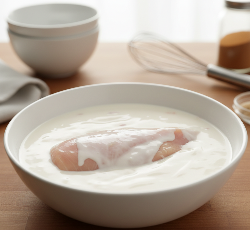 Soak chicken in buttermilk for at least 30 minutes to tenderize and flavor.