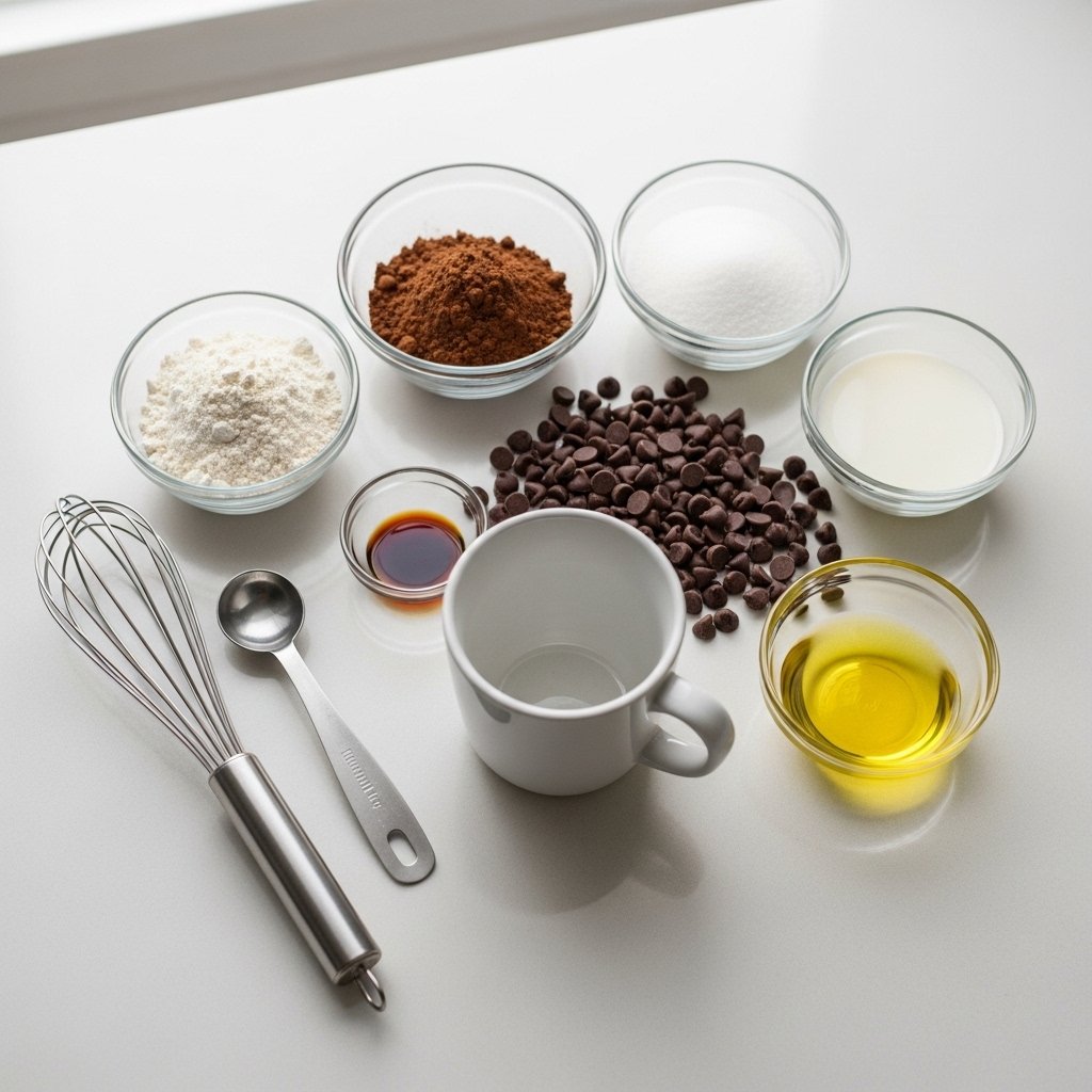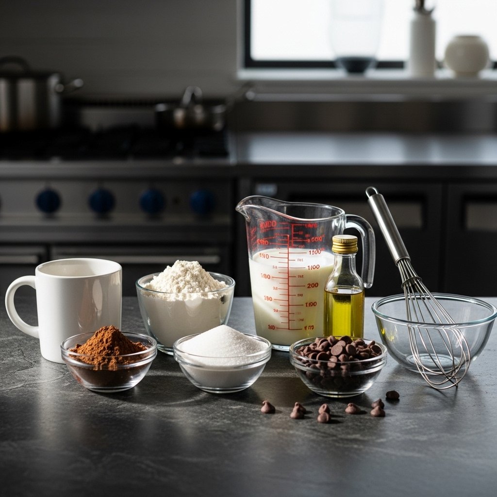 Combine flour, cocoa powder, sugar, milk, and oil in a mug.