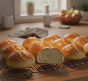 Place rolls on a baking sheet and bake at 375°F (190°C) for 12–15 minutes or until golden brown.