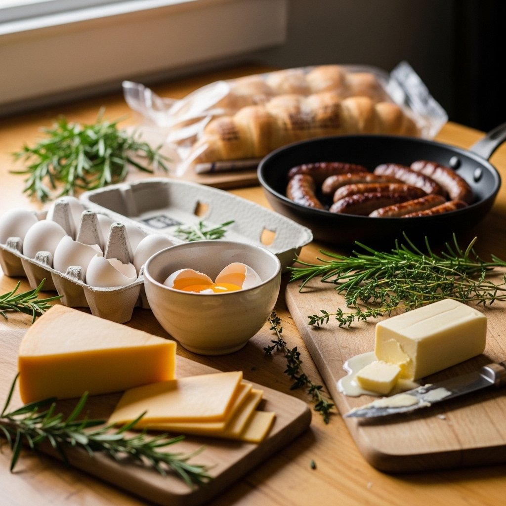 To make these tasty sausage egg breakfast rolls, you’ll need: