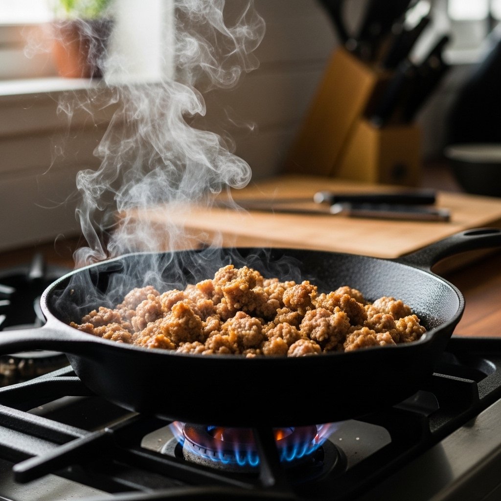 In a skillet, cook breakfast sausage until browned and crumbly. Drain excess fat and set aside.