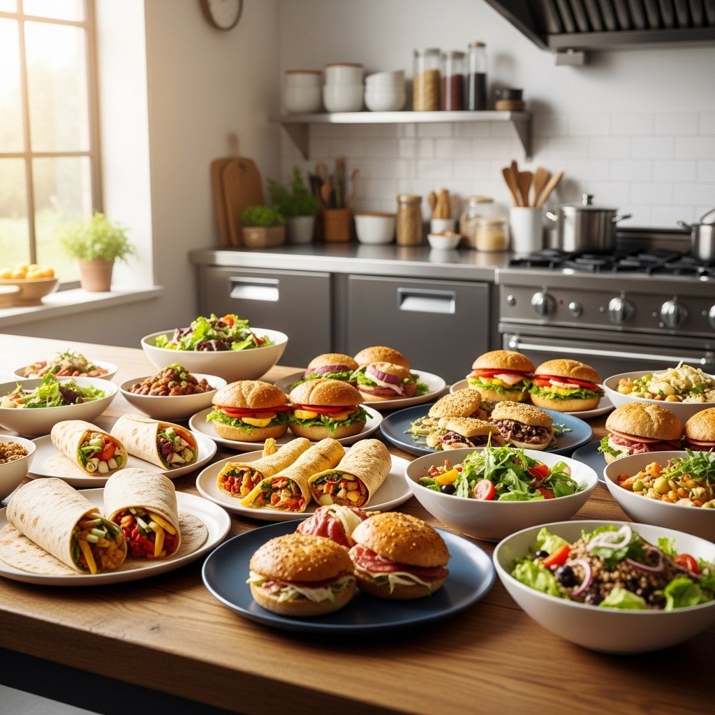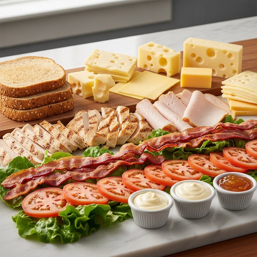- Optional toppings: lettuce, tomato, pickles