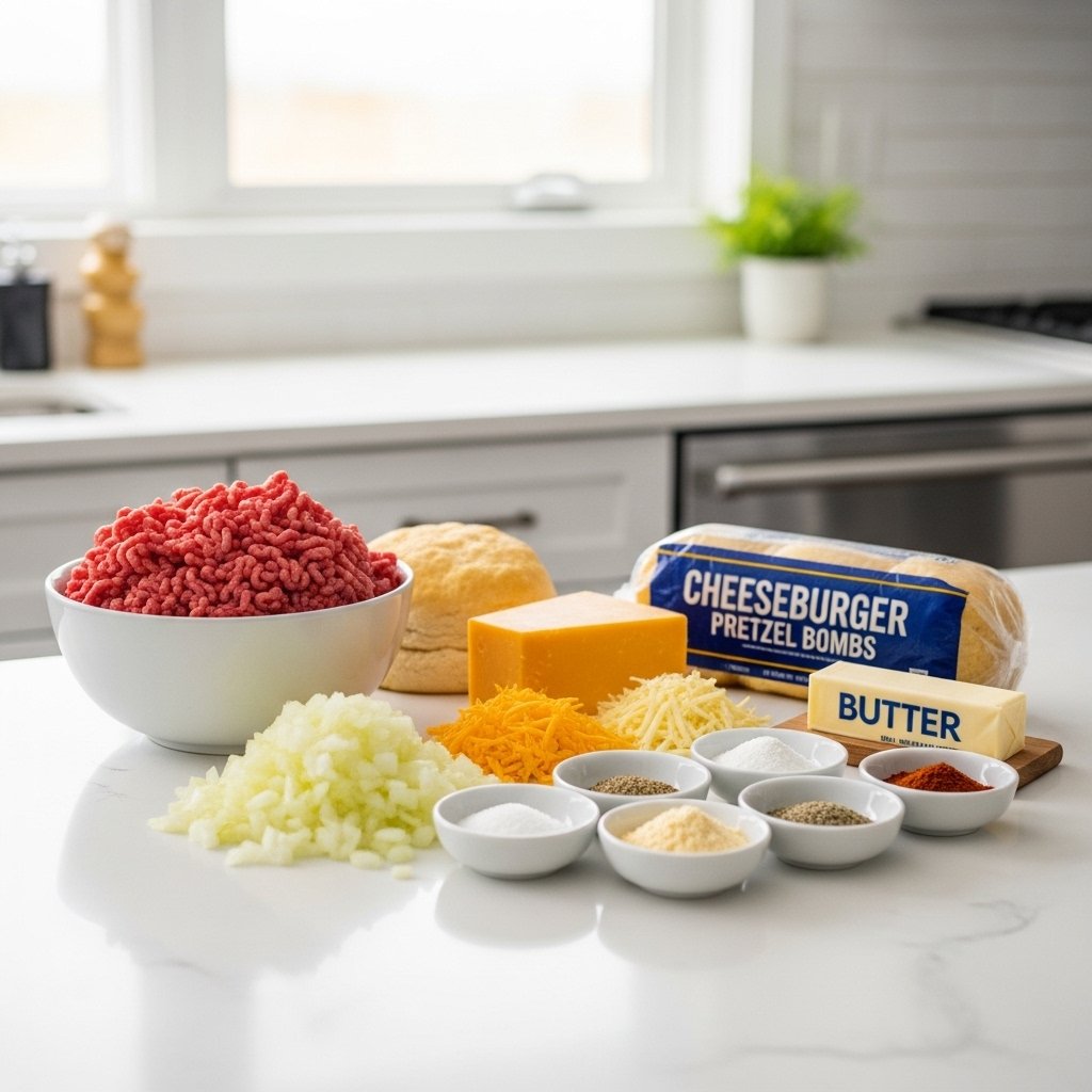 To make these Cheeseburger Pretzel Bombs, you’ll need:
