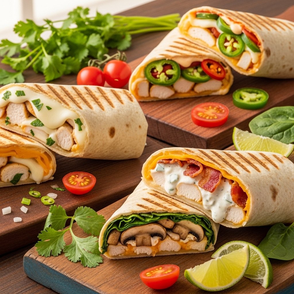 Try these tasty twists on your cheesy garlic chicken wraps – ooey, gooey, and ready in minutes: