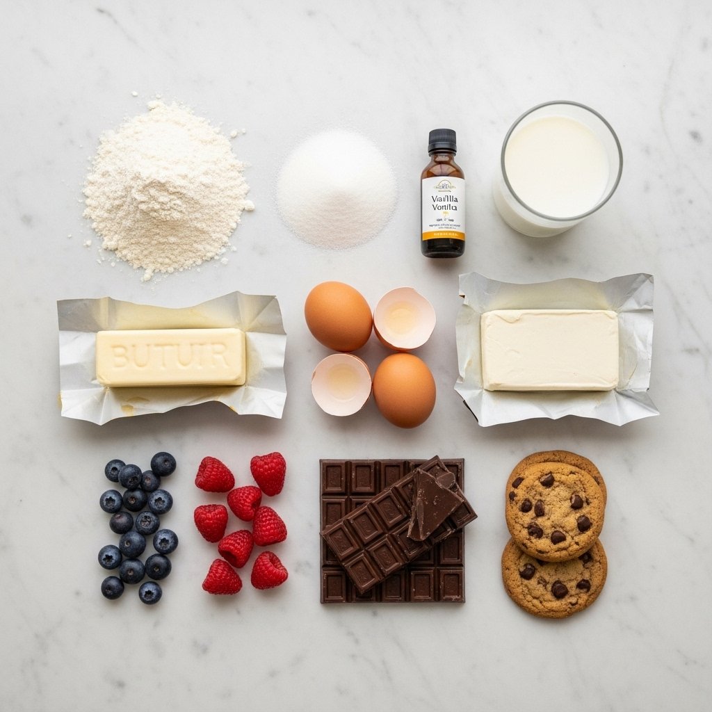 Butter and cream create richness, while sugar adds sweetness and structure. Chocolate provides depth and indulgence, and fresh fruits bring natural brightness. Vanilla extract enhances all flavors, making even simple desserts taste bakery-level.