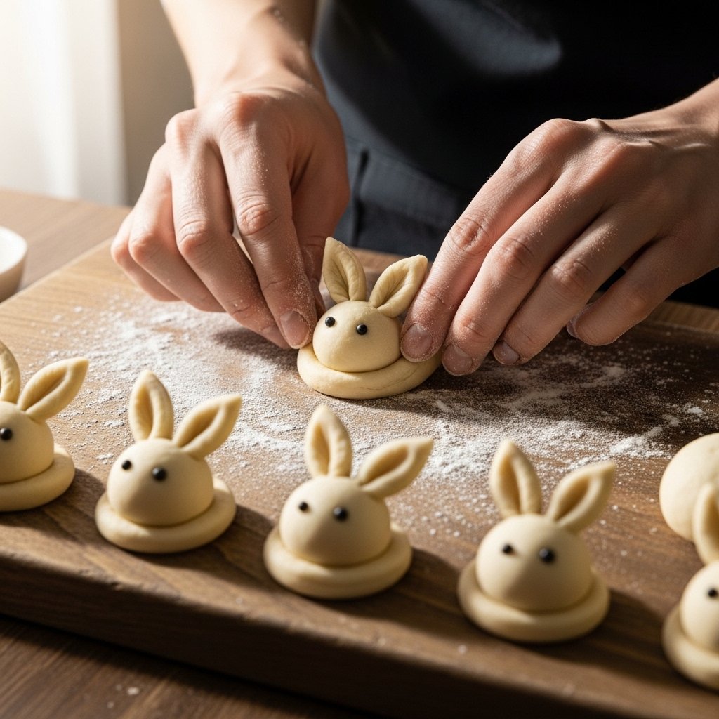 Fold and shape the dough into bunny ears and bodies. Get creative—this is the fun part for kids!