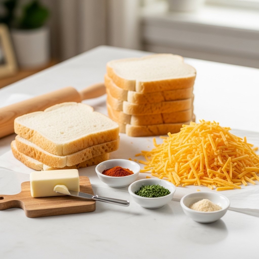 Soft white or sandwich bread works best because it rolls easily without breaking. Fresh bread is ideal for shaping. For cheese, mozzarella gives a stretchy melt while cheddar adds a rich, sharp flavor. Combining both creates the perfect balance of taste and texture.