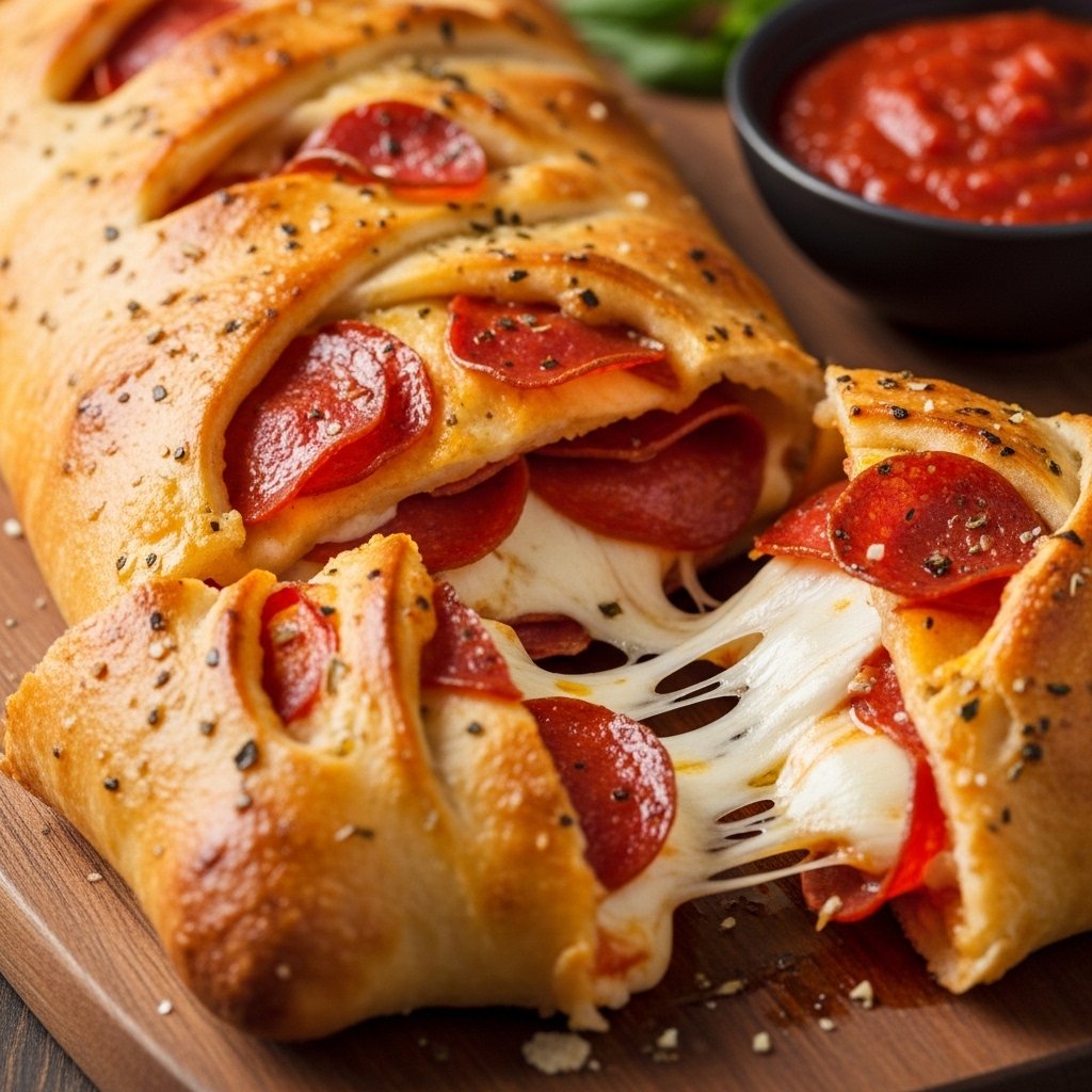 This Homemade Pepperoni Stromboli with Melted Mozzarella is everything you love about pizza wrapped into a crispy, golden roll. It’s cheesy, savory, and incredibly satisfying—perfect for family dinners, parties, or casual nights in.