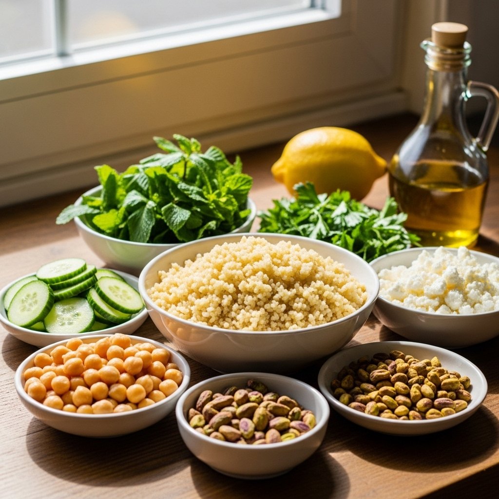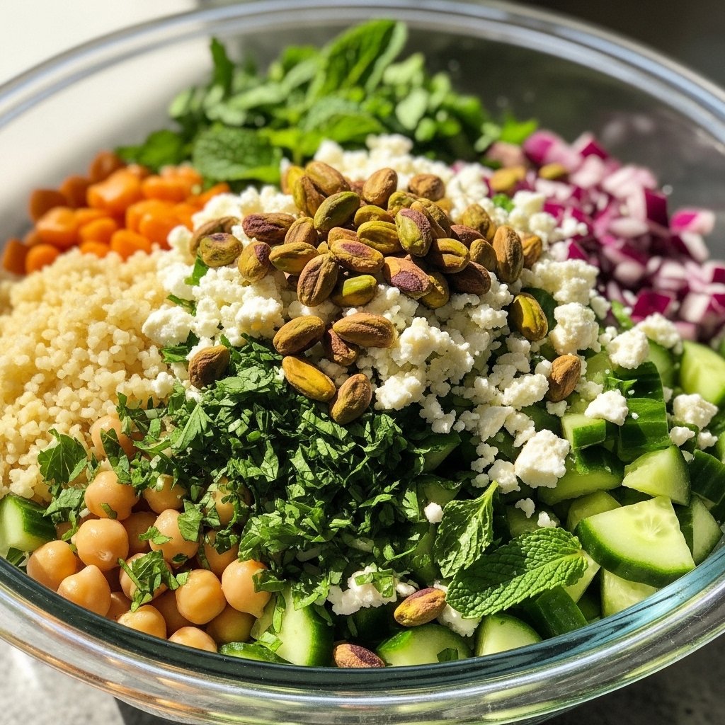 Fresh herbs are essential here. Parsley and mint bring brightness and make the salad feel incredibly fresh. The pistachios add crunch and richness, while feta gives a creamy, salty contrast.