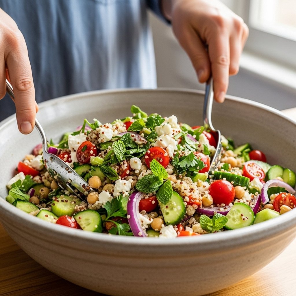 What makes this salad so special is its balance. You get nutty grains, crisp cucumbers, fresh herbs, chickpeas for protein, and a light lemony dressing that ties everything together. It’s the kind of meal you can prep once and eat all week without getting bored.
