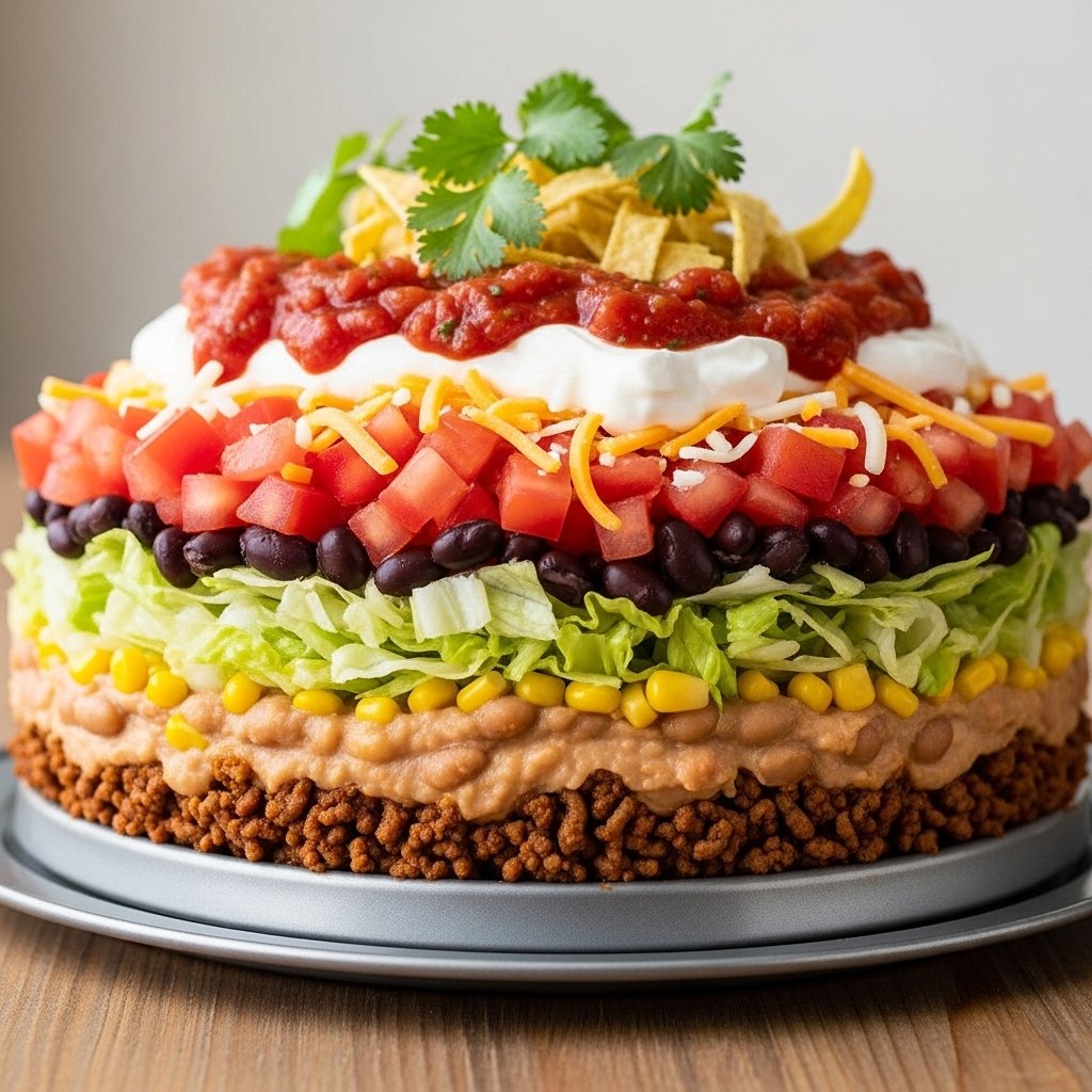 This layered taco salad in a cake pan is more than just a recipe—it’s a fun, eye-catching dish that brings people together. It’s colorful, customizable, and packed with bold Tex-Mex flavors in every bite.