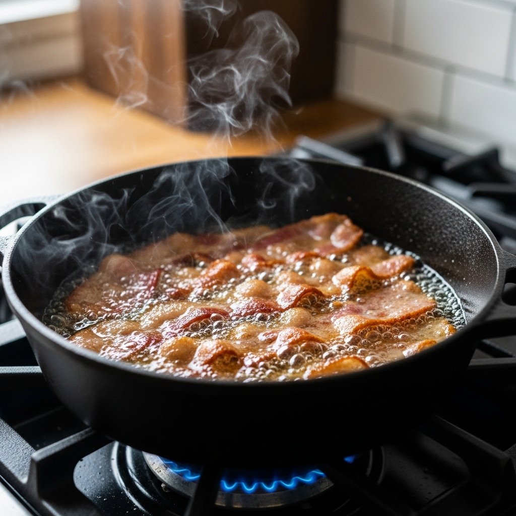In a large pot, cook bacon until crispy. Remove, chop, and set aside. Leave a small amount of bacon fat in the pot for extra flavor.