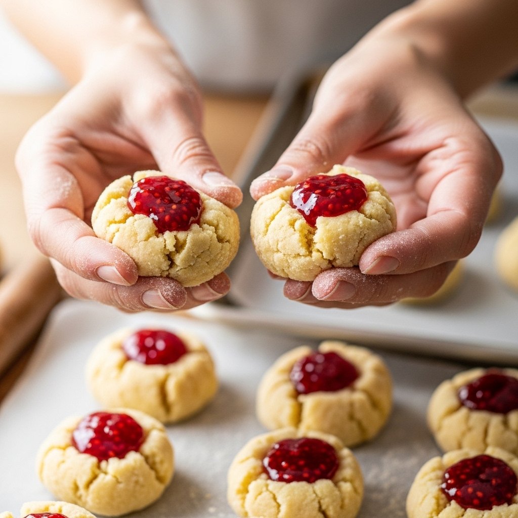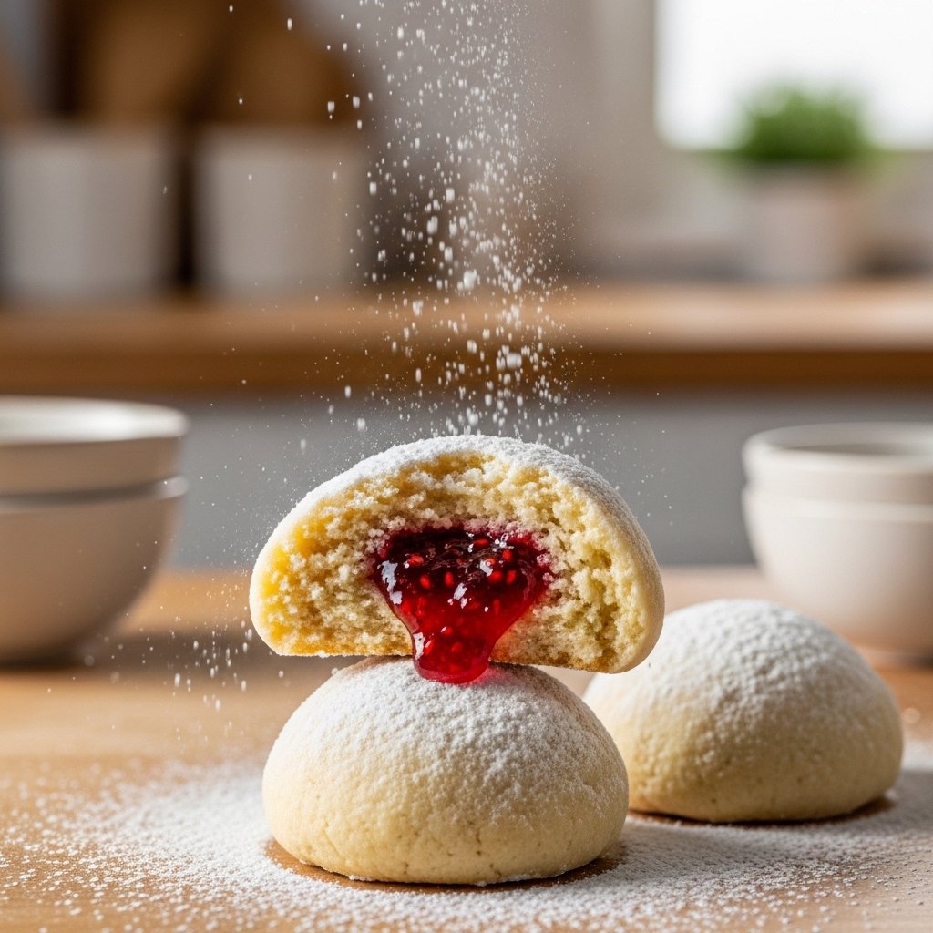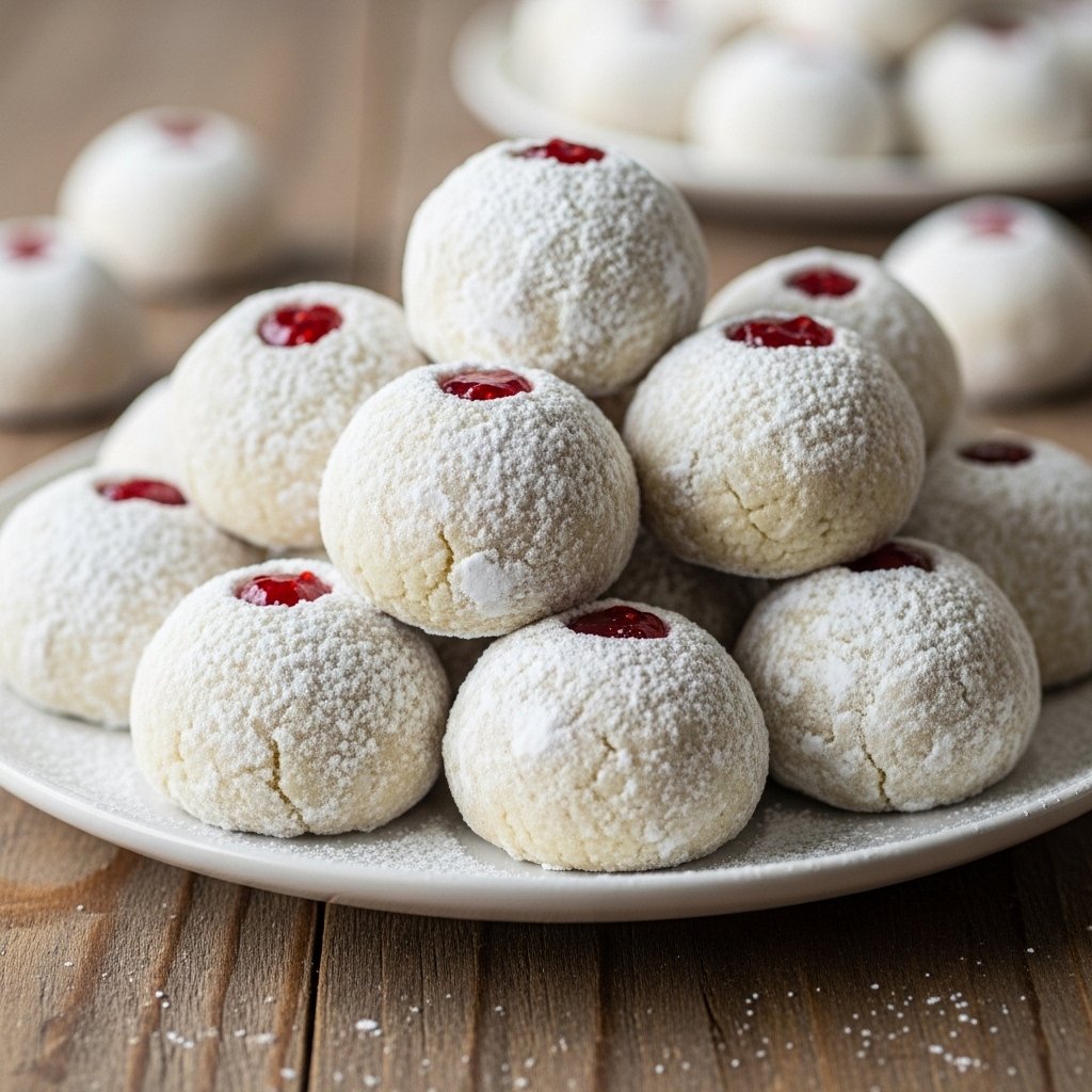 Perfect for holidays, cookie boxes, or cozy winter baking days, these snowball cookies bring together simplicity and elegance in every bite. The combination of almond flavor and tart raspberry filling creates a beautiful balance that feels both classic and special.