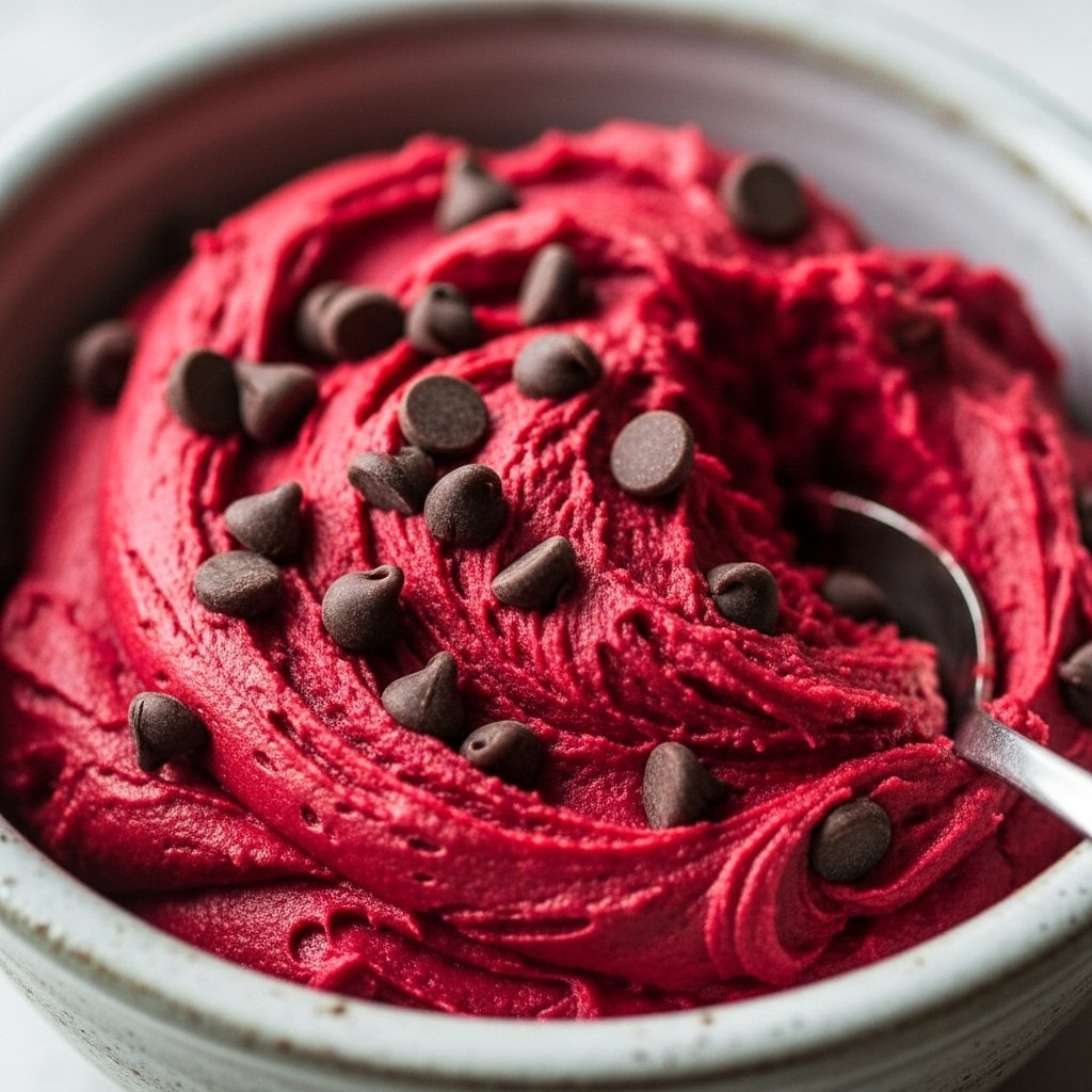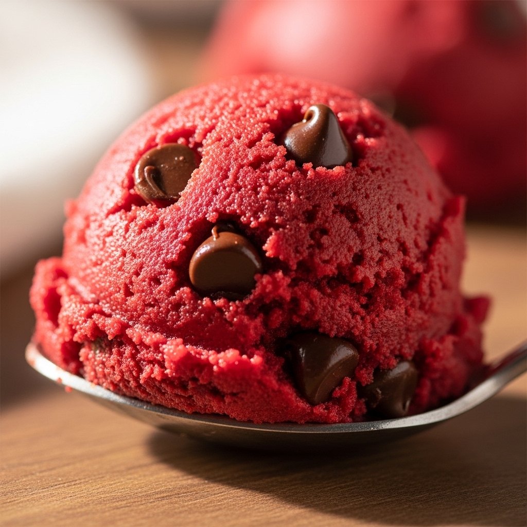 It’s a fun twist on classic cookie dough with a luxurious red velvet flavor.
