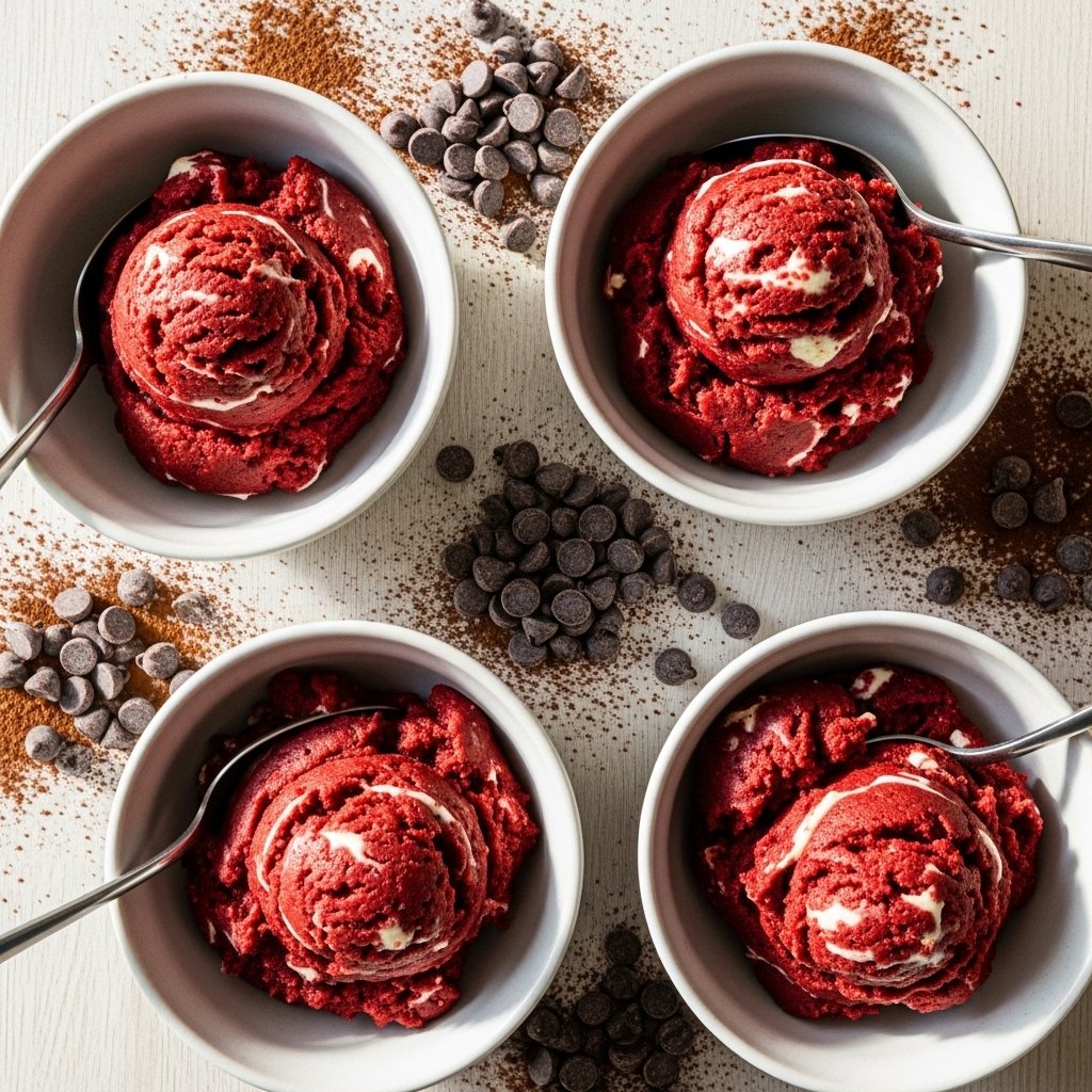 If you’ve ever sneaked a bite of cookie dough while baking, you’re going to absolutely love this Red Velvet Edible Cookie Dough. It’s everything you adore about classic cookie dough—soft, creamy, and indulgent—but made completely safe to eat raw.