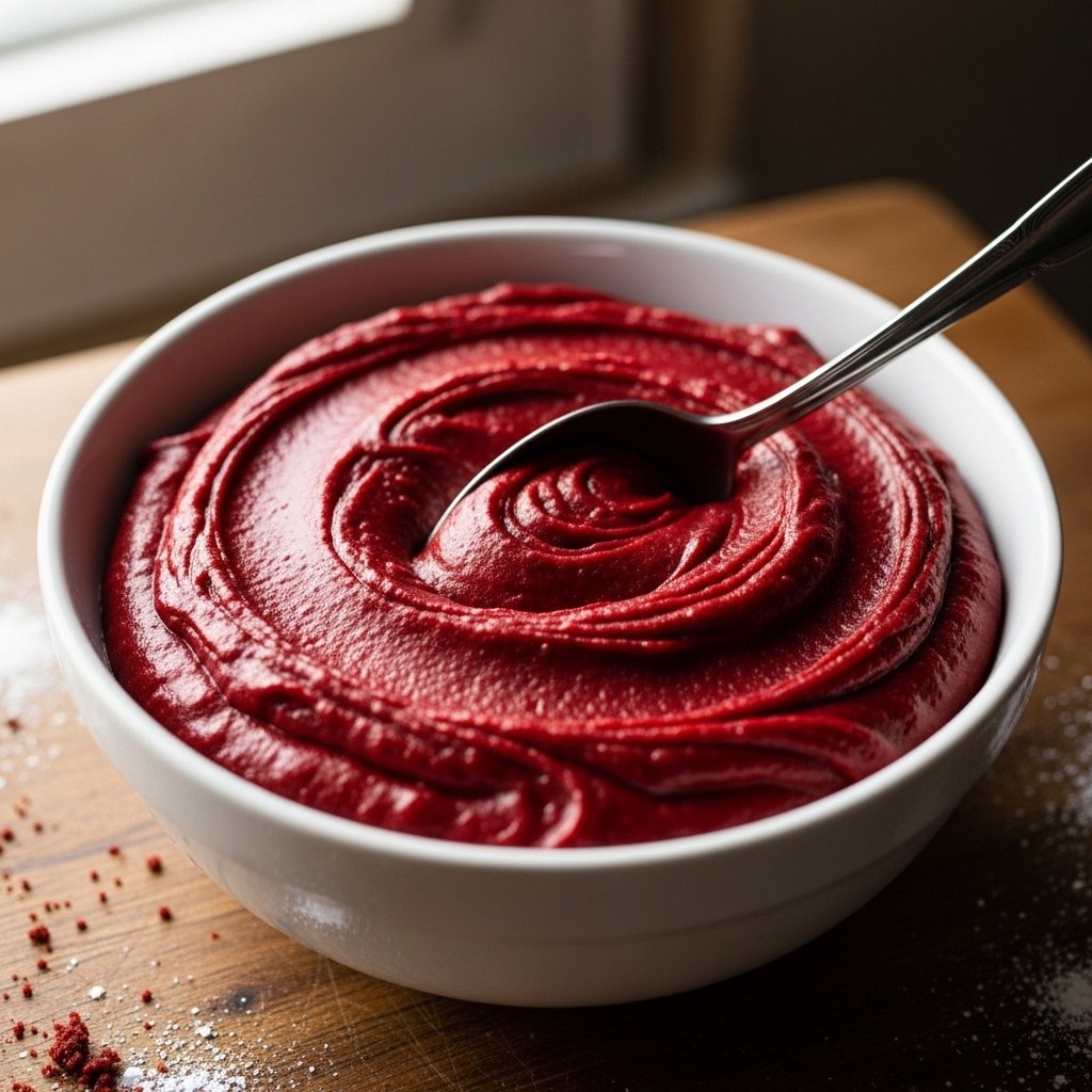 The cocoa powder gives that classic red velvet flavor, while the food coloring creates the signature vibrant look. Chocolate chips add just the right amount of sweetness and texture.