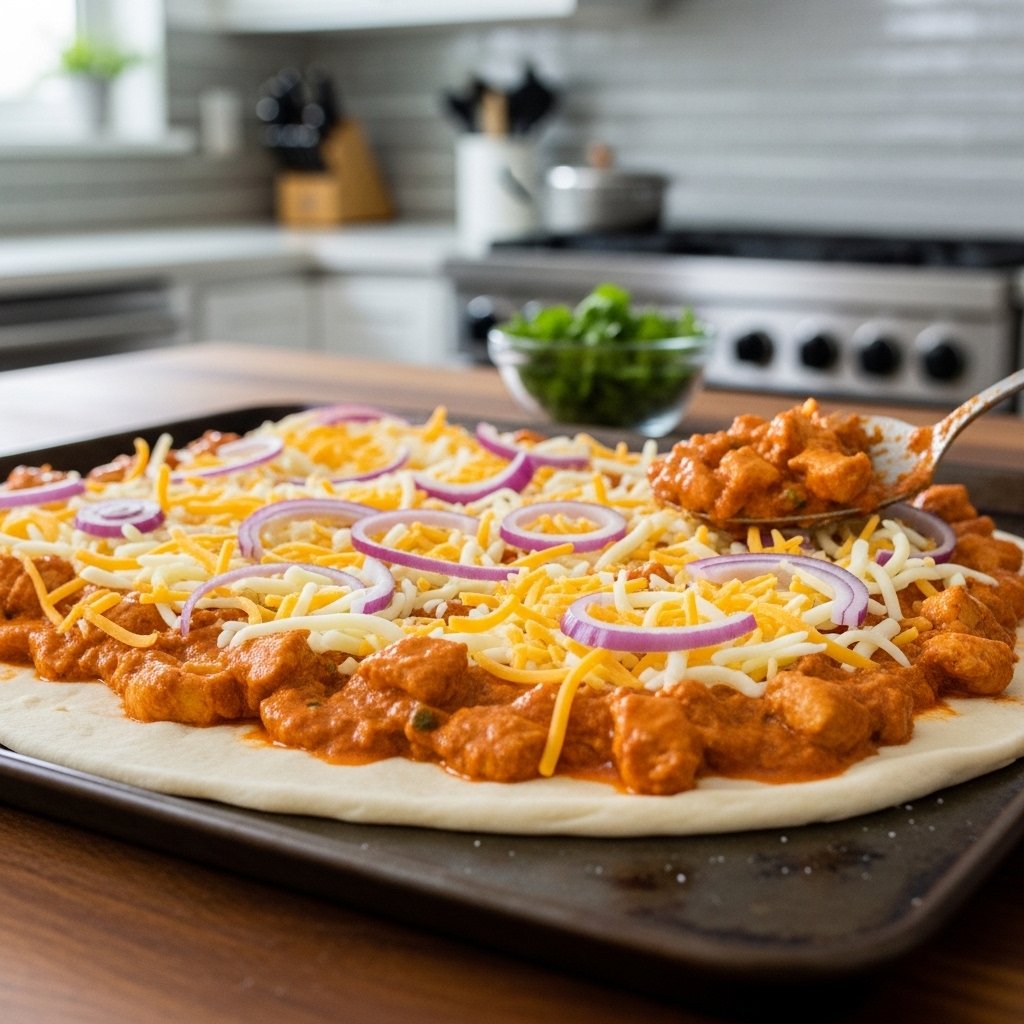This recipe is perfect for anyone looking to enjoy a healthier twist on pizza night without sacrificing flavor. The combination of spiced chicken, creamy sauce, and golden crust creates a fusion dish that feels both indulgent and balanced. Whether you’re meal prepping or cooking for family, this pizza delivers big on taste and nutrition.