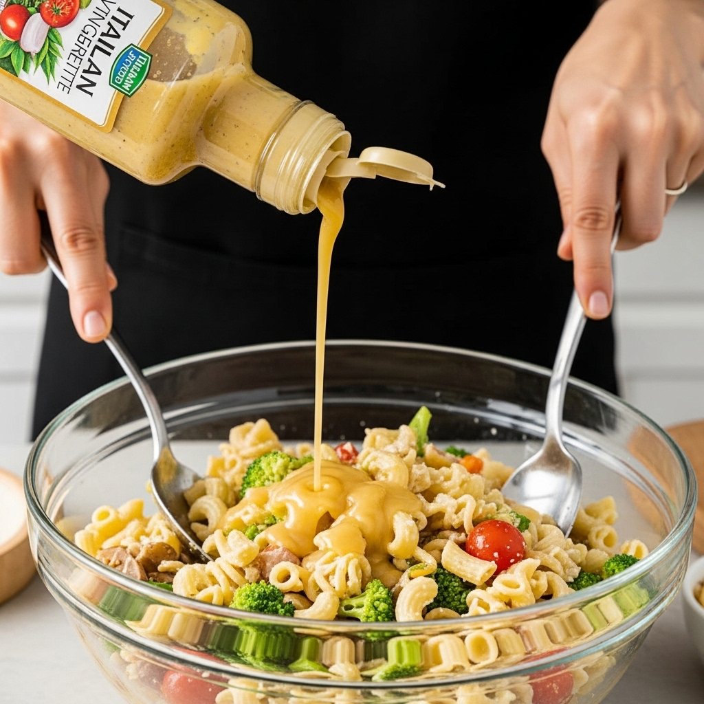 Pour Italian dressing over the salad and toss well to coat evenly.